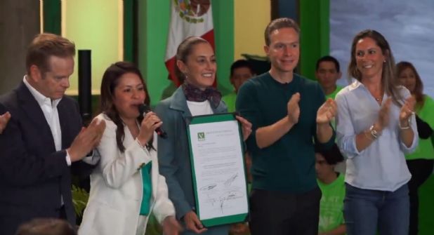 Claudia Sheinbaum recibió la constancia de candidata a la presidencia por parte del Partido Verde Ecologista de México, instituto que forma parte de la coalición Sigamos Haciendo Historia, conformada por Morena y el PT, que también ya le entregaron su constancia a Sheinbaum, el 21 de enero y el 7 de febrero, respectivamente.