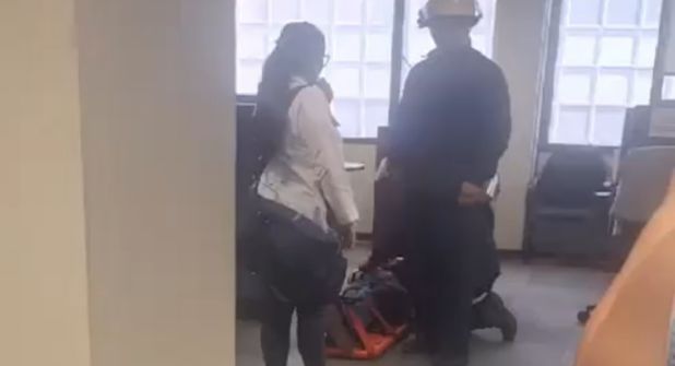 En el video, se puede escuchar cómo una persona cercana al evento comenta por celular que el problema del traslado del trabajador era que no servían los elevadores del edificio de Pemex.