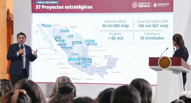 El gobierno de la presidenta Claudia Sheinbaum destinará más de 186 mil 547 millones de pesos a un paquete que incluye 37 proyectos hídricos distribuidos en todo el país, esto como parte de las acciones del Plan México para acelerar las obras públicas, fortalecer el empleo y la inversión en el país.