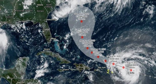 El Centro Nacional de Huracanes (NHC, por sus siglas en inglés) confirmó que Erin se ha fortalecido hasta convertirse en el primer huracán de la temporada atlántica 2025.