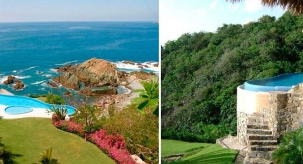 La casa de descanso ubicada en una de las zonas más exclusivas de Ixtapa, Guerrero, en la zona de Contramar tiene cinco recámaras, cada una con baño propio y cuatro de ellas con un vestidor. La principal incluye una estancia, terraza descubierta, pérgola, palapa y mirador con vista al mar.