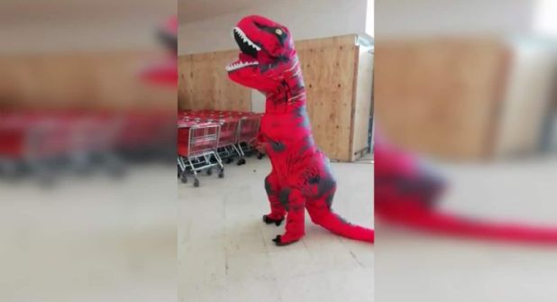 Coatzacoalcos Ver. - “Yo sólo quería acudir a realizar mis compras y verle el lado chusco a esta pandemia y no me dejaron pasar”, expresó Antonio a quien este viernes 01 de mayo le negaron el acceso a la tienda comercial Chedraui de Coatzacoalcos por portar un traje de dinosaurio.