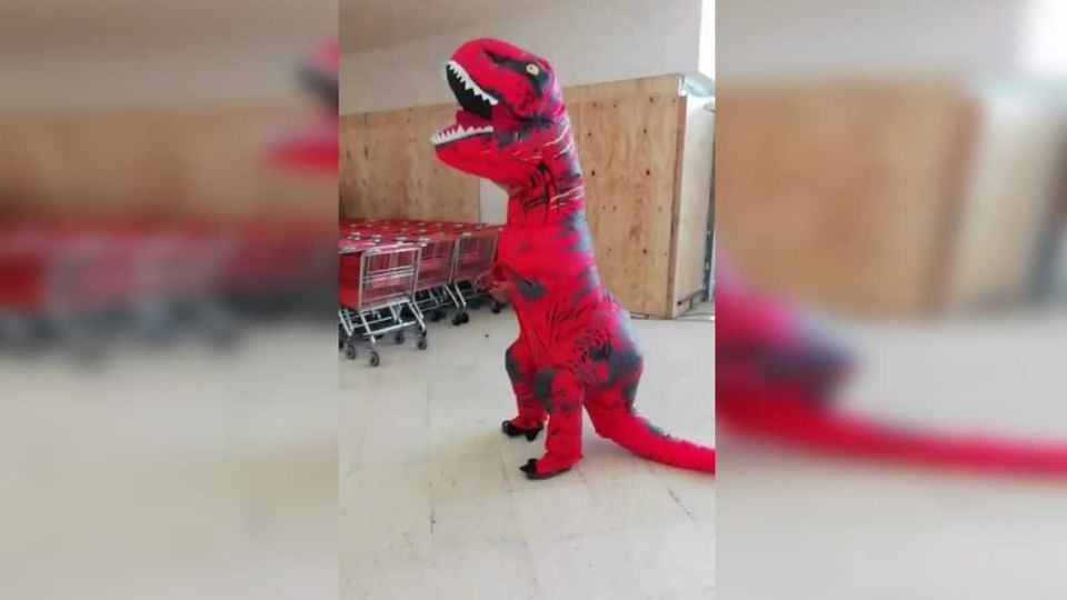 El ciudadano de Coatzacoalcos señaló que no es la primera vez que utiliza la botarga de tiranosaurio rex, pues en la Ciudad de México (donde la compró), ya había ingresado a otra tienda comercial portándola.