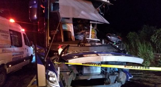 De acuerdo con el reporte oficial, el accidente se registró al filo de las 2:00 horas de este martes 16 de agosto, cuando ambas unidades se impactaron de frente; presuntamente el chófer de la unidad de doble remolque perdió el control por conducir a exceso de velocidad.