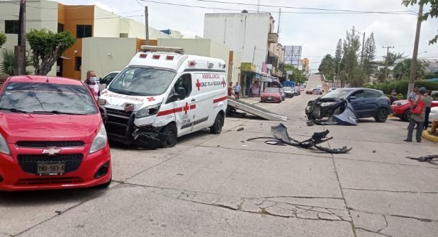 COATZACOALCOS, VER.- Un aparatoso choque, en donde se vio involucrada una ambulancia de la Cruz Roja de Coatzacoalcos, se registró la tarde este miércoles 17 de agosto en la colonia María de la Piedad.