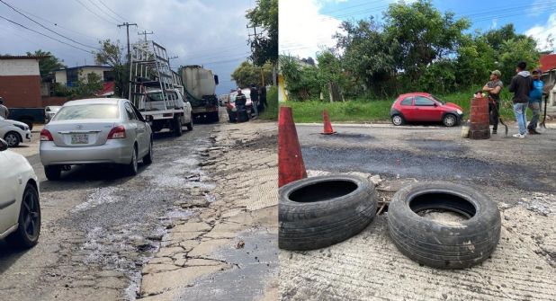 Mientras en la cabecera municipal las múltiples obras públicas complican el tráfico vehicular, en la carretera a esta localidad son los hundimientos los que dificultan la vialidad a los miles de autos y camiones que ahí circulan todos los días.