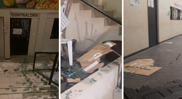 Algunas oficinas del ayuntamiento muestran los resultados de esta agresión: hay cristales de ventanas quebrados, sillas, escritorios y mobiliario en general fueron destruidos y quedaron regados por todas partes.