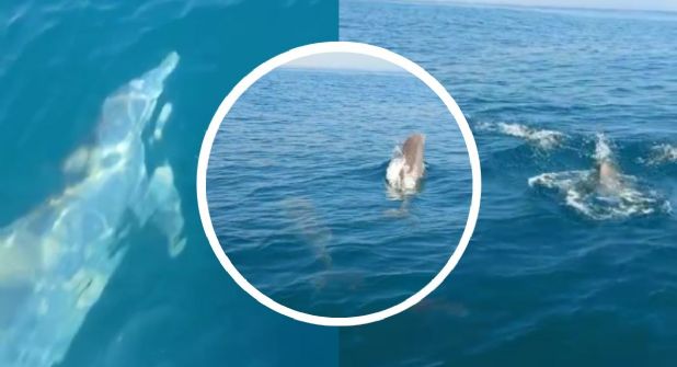 Este Jueves Santo, mientras se realizaban labores de pesca en aquella zona, pudieron observarse a al menos un par de delfines. Al acercarse los pescadores del lugar, los mamíferos surcaron las aguas en la misma dirección mientras era grabado el espectáculo.