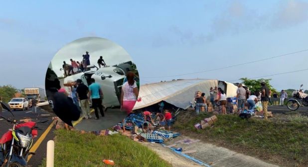 La caja se abrió y la unidad quedó atravesado sobre la carretera, por lo que comenzaron a llegar algunas personas que habitan en este municipio, quienes sin importar que se tratara de un accidente comenzaron a levantar las cajas de los productos lácteos. A los actos de rapiña se sumaron algunos automovilistas que transitaban por la misma vía.