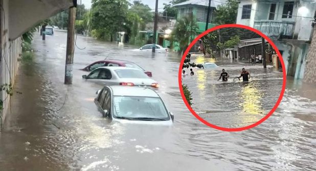VERACRUZ, VER. - Las fuertes lluvias que se mantienen este sábado 29 de julio en el sur de Veracruz, ya causaron las primeras inundaciones en el municipio de Minatitlán. Vehículos cubiertos por el agua, un asilo inundado y un centro comercial anegado son parte del saldo reportado hasta el momento.