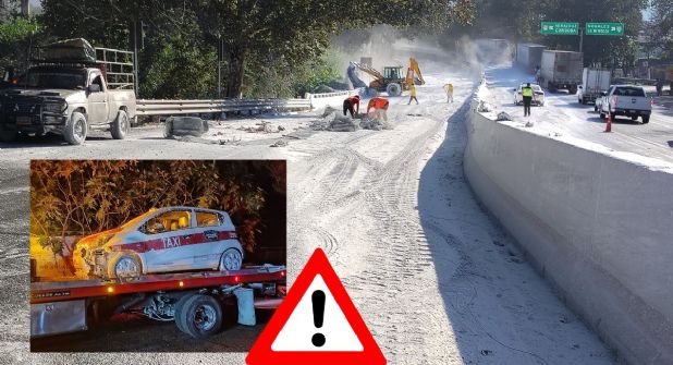 Al momento de este accidente, circulaba un taxi del municipio de Orizaba dirección Mendoza, el cual fue alcanzado por bultos de cal. El conductor resultó con lesiones menores, aunque con crisis nerviosa por el incidente, pues tuvo que hacer maniobras para evitar que los bultos de cal no le cayeran.