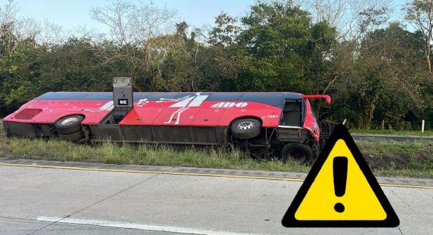 COATZACOALCOS, VER. - La volcadura de un autobús de la línea a ADO, registrado sobre autopista 145D La Tinaja -Cosoleacaque en el tramo de Acayucan hacia Cosoleacaque, dejó como saldo una mujer muerta y más de cinco personas lesionadas durante las primeras horas de este martes 11 de marzo, al sur de Veracruz. El hecho generó la movilización de las unidades de emergencia y policiacas para atender el accidente.