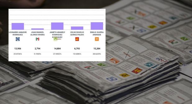 Tras contar los votos, el candidato del partido naranja sumó 15,384 votos, mientras que la candidata de Morena, Janeth Adanely Rodríguez, solo contabilizó 14 mil 884 sufragios, es decir, hubo 500 votos de diferencia entre un partido y otro.
