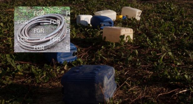 En el primer inmueble, ubicado sobre la carretera Coatzacoalcos–Villahermosa, en Moloacán, se aseguraron tres mil 360 litros de hidrocarburo almacenados en bidones, contenedores y tambos, además de tres vehículos y maquinaria pesada. En tanto, en Tuxpan se localizaron 700 litros de combustible y tres vehículos más.