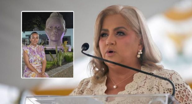 "En este inicio de semana quiero compartirles que el día de mañana vamos a atender la solicitud que en muchas comunidades me hicieron, en campaña y ya estando aquí. Me pidieron que por favor, se retirara esta jardinera con la imagen esta que está aquí atrás, en donde fue mucha polémica y que bueno, no se nos tomó en cuenta para hacerlo", dijo la actual presidenta municipal.
