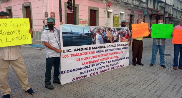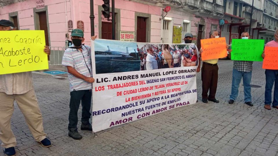 Uno de los grupos que se manifestó fue el de los exobreros del Ingenio San Francisco El Naranjal, ubicado en el municipio de Lerdo de Tejada, quienes señalaron que autoridades del Gobierno del Estado simularon la reapertura de la factoría para saquearla.