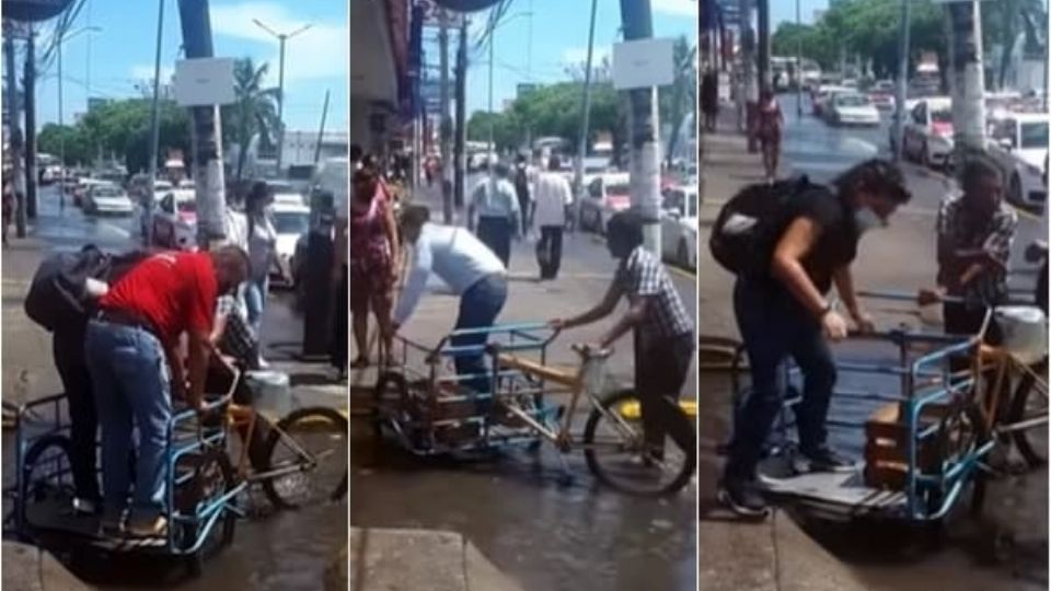 En un vídeo que circuló en redes sociales quedó grabada la hazaña y el ingenio de esta persona, que utilizó su triciclo como una “panga” para subir a las personas que le pedían el favor de un lado a otro. Agradecidos desembolsaban un par de moneadas antes de seguir su camino.