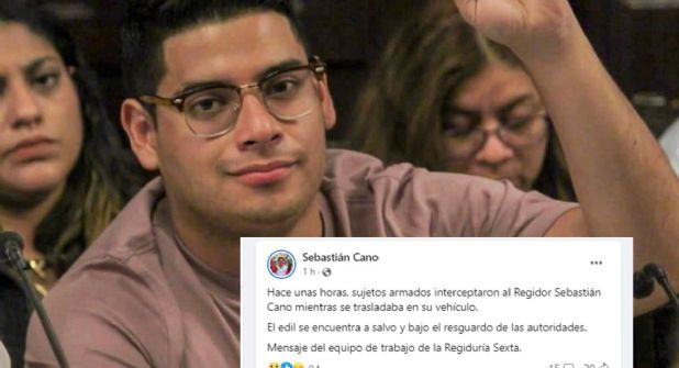 "Hace unas horas, sujetos armados interceptaron al Regidor Sebastián Cano mientras se trasladaba en su vehículo. El edil se encuentra a salvo y bajo el resguardo de las autoridades. Mensaje del equipo de trabajo de la Regiduría Sexta", se puede leer en el post que se hizo circular a través de su cuenta de Facebook.