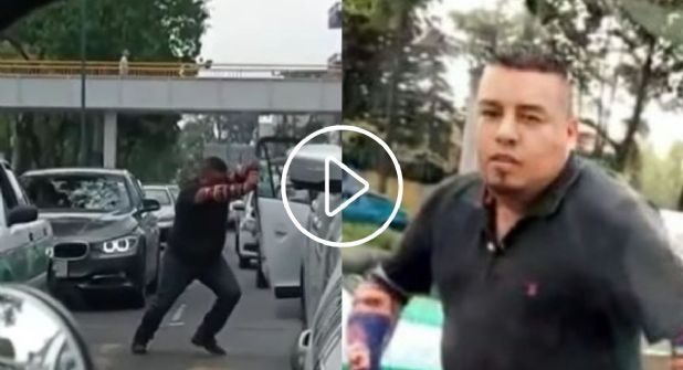 Fue este martes 18 de abril que el video grabado por un automovilista comenzó a circular. En la grabación difundida en Facebook por Ventaver Mx se ve al sujeto jalando la puerta de una de las puertas traseras de una auto color blanco. El forcejeo es en repetidas ocasiones hasta que el hombre azota la puerta. “Puta madre”, dice y camina hacia su moto, en el carril de junto.