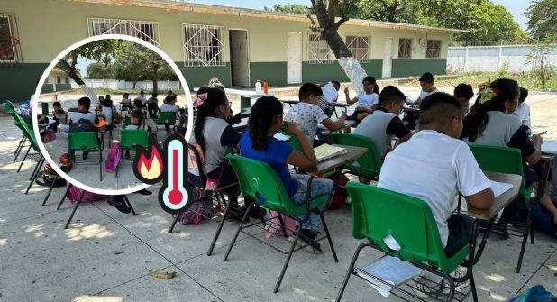 VERACRUZ, VER.- Alumnos de la escuela primaria Alfonso Arroyo Flores, en la colonia Las Bajadas de la ciudad de Veracruz, tomaron clases este jueves 15 de junio en el patio, debajo de los árboles, para resguardarse del calor, luego de que el plantel se quedó sin energía eléctrica.
