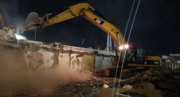 VERACRUZ, VER. - La noche de este viernes 18 de octubre, trabajadores comenzaron la demolición de locales del Mercado de Artesanías, en la zona del Malecón de Veracruz. Con maquinaria pesada, se comenzó con el derribo de paredes y columnas de esta zona comercial, luego de semanas de polémica y quejas por parte de comerciantes y habitantes del puerto de Veracruz.