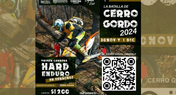 EMILIANO ZAPATA, VER.- Toda la adrenalina de la disciplina deportiva hard enduro llega a Veracruz por primera vez con La Batalla de Cerro Gordo 2024, que se realizará el 30 de noviembre y el 1 de diciembre a través de los terrenos escarpados, ríos y naturaleza de esta localidad de Emiliano Zapata.