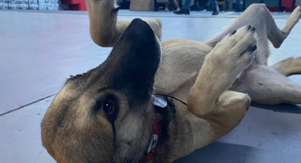 VERACRUZ, VER.- En las gradas del estadio de beisbol “Beto Ávila”, en Boca del Río, una perrita corre y juega con los empleados y guardias de seguridad que cuidan el lugar. Su nombre es Sky Aguilar y desde hace dos años este sitio deportivo es su hogar, después de haber sido rescatada de la calle por los dueños de la franquicia.