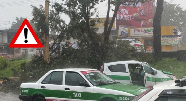 El estruendo alertó a las personas que estaban cerca y de inmediato se hizo el llamado de emergencia. El árbol cayó sobre el taxi con número económico XL-4220 que circulaba por el lado del camellón; se reportaron dos pasajeros lesionados, que sería una clienta y el conductor.