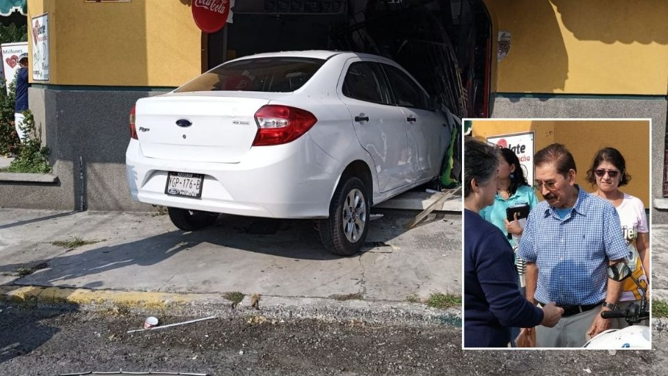 La mitad del automóvil quedó dentro de la tienda, luego de derribar la protección de herrería de un costado de la tienda. Miguel, adulto mayor y quien tuvo que recibir ayuda de sus vecinos para salir detrás del aparador, agradece que al momento del choque no se encontraba ningún cliente, de lo contrario, habría sido arrollado.