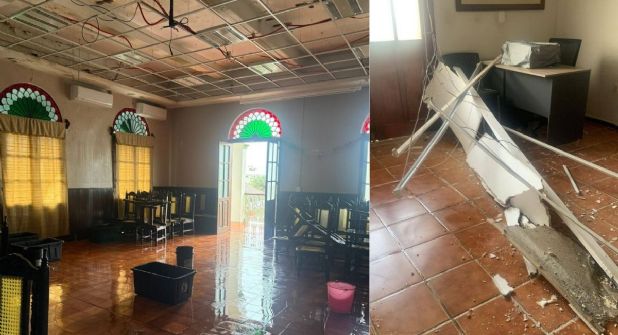 ALVARADO, VER.- Debido a las intensas lluvias de este miércoles 8 de octubre, diversas áreas del techo del Palacio Municipal de Alvarado se desprendieron. En las imágenes compartidas por el propio ayuntamiento, se observa que el techo cayó sobre las sillas del cabildo y escritorios.