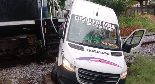 Con menos de una hora de diferencia, se registró otro accidente, donde el conductor de una Van de pasajeros fue arrastrado por el tren, tras intentar ganarle el paso; el percance ocurrió en el municipio de Cosoleacaque y el chofer también resultó con lesiones.