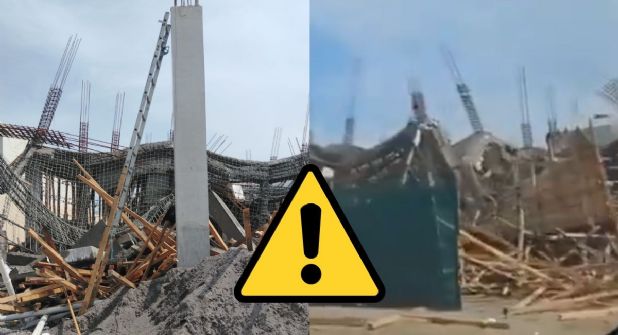 VERACRUZ, VER.- Este viernes 26 de septiembre se registró el desplome de una cimbra de construcción de lo que sería una plaza en el fraccionamiento Lomas del Mar, en la Riviera Veracruzana. Los trabajadores de la obra lograron ponerse a salvo.