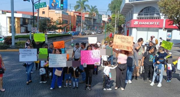 XALAPA, VER.- Madres y padres de familia del jardín de niños José María Morelos y Pavón, ubicado en la zona centro de Xalapa, bloquearon la calle Enríquez como medida de protesta para exigir la conclusión de los trabajos de mantenimiento del plantel, los cuales permanecen inconclusos desde hace seis meses.