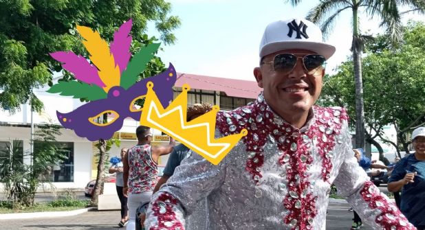 El carisma y entusiasmo que contagia al público fue una de las cosas que le valió para que los jurados lo eligieran entre los otros 6 candidatos que compitieron en un certamen para ser rey del carnaval, el pasado martes 30 de mayo.