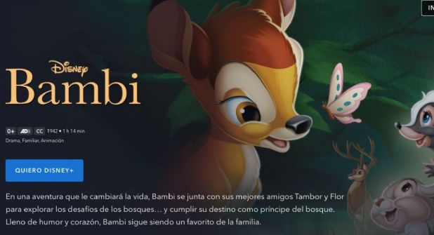 De pequeños pudimos ver la película de Bambi, la cual es una de las películas animadas por Walt Disney Productions estrenada en el año 1942, y es que la historia está basada en el libro "Bambi, una vida en el bosque", de Felix Salten, uno de los clásicos más queridos y animados de Disney, y es que si bien es un filme que se recomienda más para adultos que para niños, esta obra hecha para niños tuvo que ser modificada para su reproducción en la plataforma.