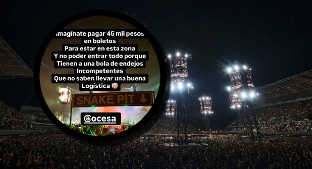 “En el staff se tiene un desmadre en su logística, terrible. O sea, de verdad es increíble”, señaló. Yo ya voy saliendo, la neta. Pues sí me ofrecieron opciones y de ‘güey, ya quédate y bla, bla, bla’, pero no mames, yo pagué un boleto de 15 mil bolas para poder ver a la banda de cerca, divertirme y disfrutarlo con mi familia. Ya ni pustas ganas me quedaron de quedarme”, explicó.