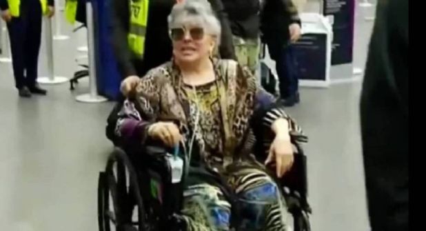 Verónica Castro fue captada en el Aeropuerto Internacional de la Ciudad de México, siendo asistida por personal del aeropuerto y llevando una cánula nasal, que es un dispositivo que se utiliza para administrar oxígeno suplementario o aumentar el flujo de aire a un paciente o persona que necesita ayuda respiratoria.