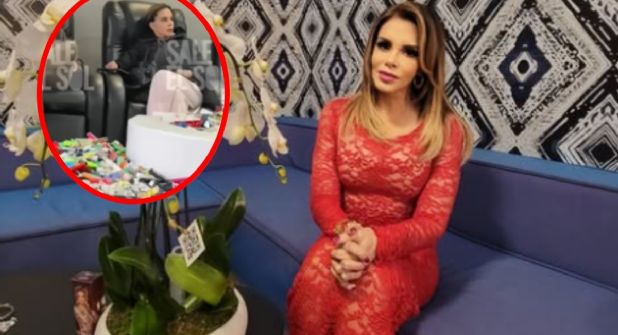 Efectivamente, en una de las fotos se ve a a Lucía Méndez sentada en una hilera de sillas frente a un enorme bote en el que están vapeadores, encendedores, cerrillos, cigarros.