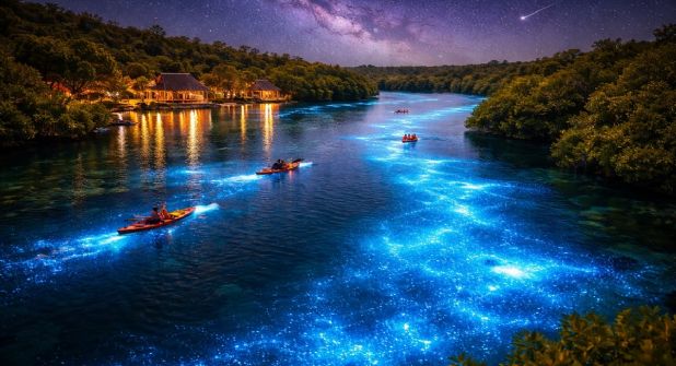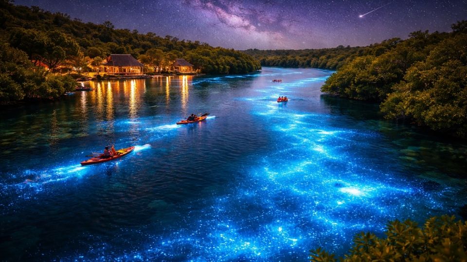 Los recorridos suelen comenzar después del atardecer, donde los visitantes se adentran en lanchas o kayaks. Según los operadores locales, la forma más espectacular de vivir el fenómeno es nadando, ya que el movimiento del cuerpo activa el brillo del plancton de manera inmediata.
