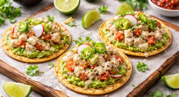 - Montar la tostada: Sirve una porción de la mezcla de pescado sobre la tostada con frijoles.