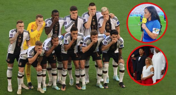 Doha, 23 nov (EFE).- El "once" de Alemania en su debut contra Japón en el Mundial de Qatar posó con la mano sobre la boca, en una clara protesta contra la FIFA que ha impedido a los capitanes de los equipos llevar un brazalete en apoyo a la comunidad LGBTIQI+.