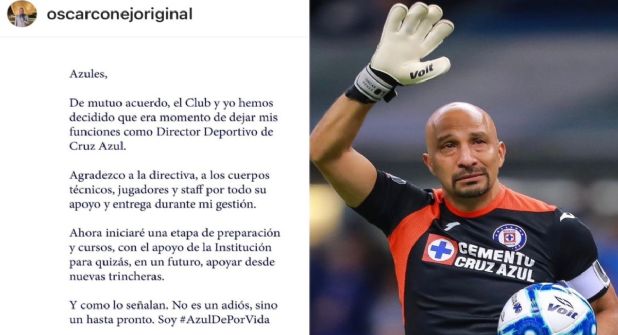 El viernes pasado Cruz Azul anunció su primera baja de cara al Clausura 2024, a través de un emotivo video La Máquina se despidió de Óscar ‘Conejo’ Pérez, quien dejó su cargo como director deportivo de los celestes. En su publicación el club mencionó que no es un adiós sino un hasta pronto, lo que significaría un posible regreso en el futuro.