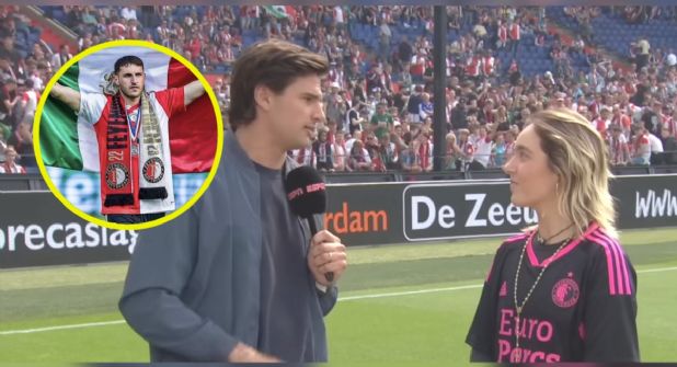 En este sentido, la actriz y conductora fue entrevistada por un reportero de ESPN, quien le preguntó cómo fue la forma en que ella y Santiago Giménez se conocieron, además de asistir al estadio del Ajax a apoyar al Feyenoord.