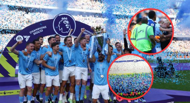 El Manchester City está celebrando a todo lo grande su título en la Premier League 2022/2023. Aunque los dirigidos por Pep Guardiola se coronaron campeones ayer de manera matemática, la victoria ante el Chelsea este domingo, funcionó para que el equipo pudiera festejar en su estadio. Así fue como los aficionados del Manchester City invadieron el césped del Etihad Stadium tras conquistar su novena Premier League este domingo.