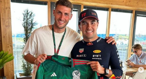Dos grandes talentos mexicanos intercambiaron camisetas e impresiones de sus respectivos deportes en Países Bajos. El piloto de Red Bull Sergio Checo Pérez y el delantero del Feyenoord Santiago Giménez se reunieron este viernes 25 de agosto de 2023 con motivo del Gran Premio del circuito de Zandvoort.