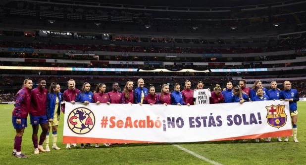 Barcelona y Real Madrid con varias campeonas del mundo, llegaron a México para disputar partidos ante el América y Tigres, respectivamente. Por ese motivo, dos horas antes del comienzo del partido amistoso entre Las Aguilas y las blaugranas, los hinchas que asistieron al Estadio Azteca se manifestaron en apoyo a jugadora española Jennifer Hermoso.