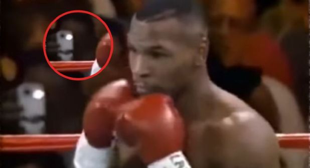 Pero una imagen de las gradas en aquella pelea de Mike Tyson ha generado polémica, ya que aparece un aficionado con lo que parece un Smartphone en las manos y tomando una fotografía.