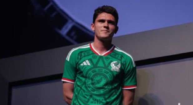 Adidas confirmó un diseño que ya circulaba en redes desde hace semanas: verde intenso, detalles blancos y rojos, y en el centro del pecho, grecas que recuerdan el distintivo calendario azteca en tonos más oscuros.