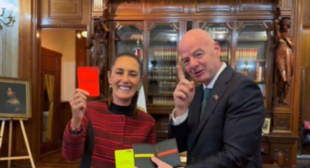 “Estoy con Gianni Infantino, presidente de la FIFA, invitado especial de nosotros, porque estamos evaluando todo para el próximo Mundial. Todo va a salir maravilloso. Esta inauguración va a ser histórica y excepcional”, garantizó Sheinbaum.