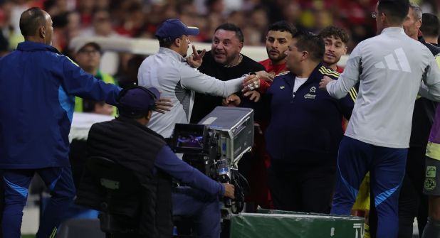 La calma comenzó a romperse antes de la compensación. La expulsión de Shayr Mohamed, auxiliar técnico e hijo del "Turco", encendió los ánimos. Ante esto, el director técnico de los Diablos reaccionó con un gesto obsceno hacia la banca americanista, presuntamente recordando sus triunfos pasados sobre las Águilas.